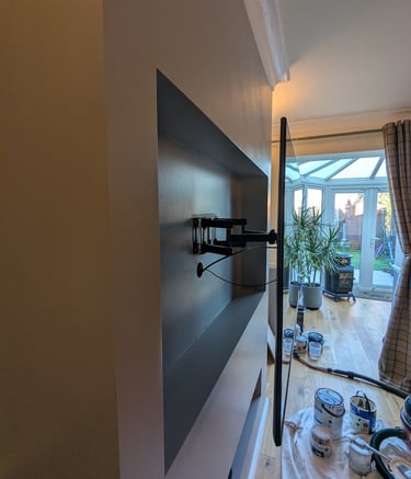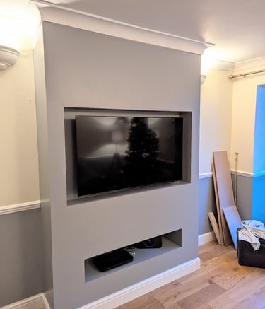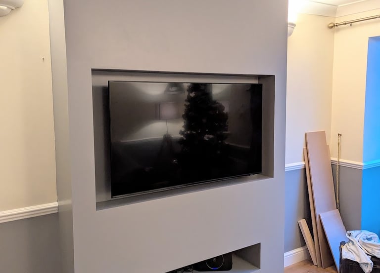 This customer wanted a media wall that would match the existing decor and resembling a chimney breast, with space for a underneath for a sound bar.